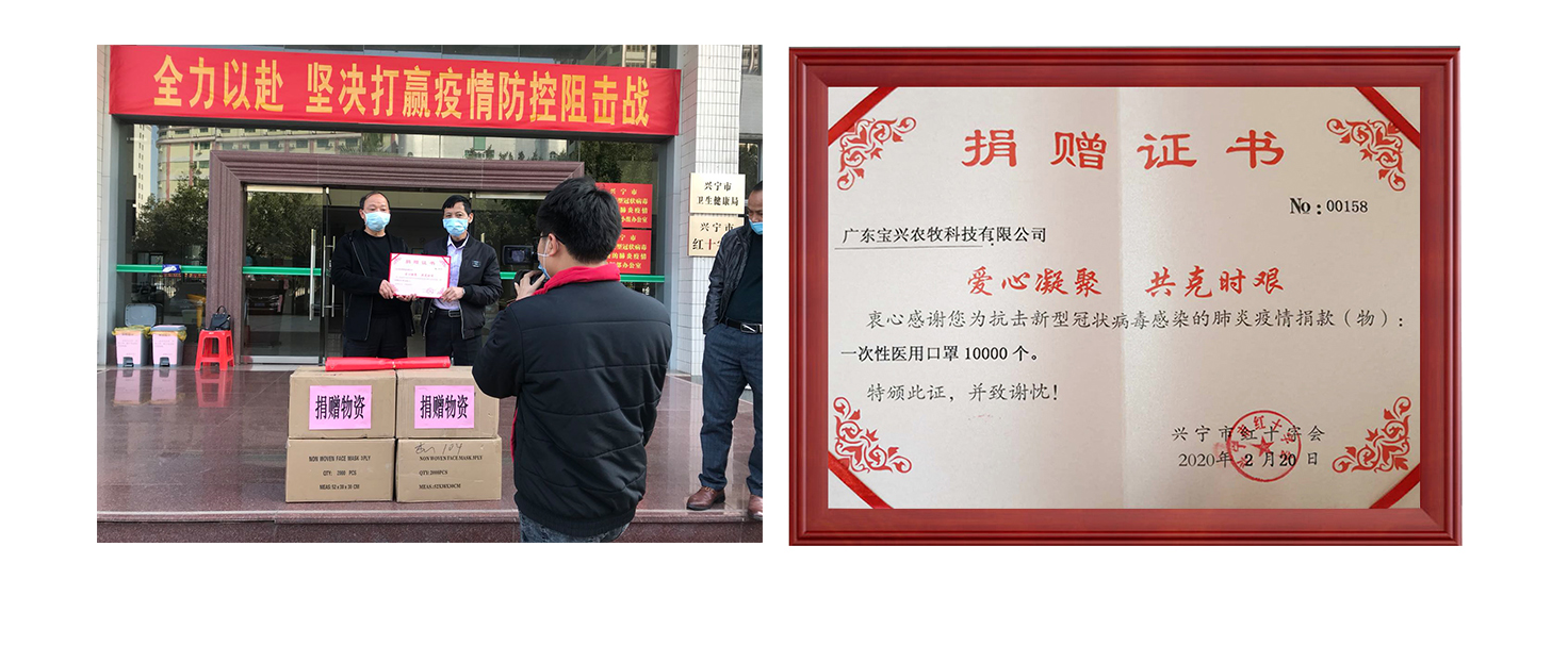 同时,集团下属宝兴公司也在积极行动。20日,集团总裁助理吴宏丰前往梅州市兴宁市红十字会,代表宝兴公司捐赠了10000个医用口罩,助力早日战胜疫情。