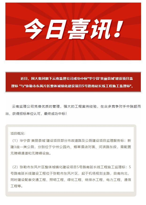 喜讯 丨 云南监理公司中标新项目